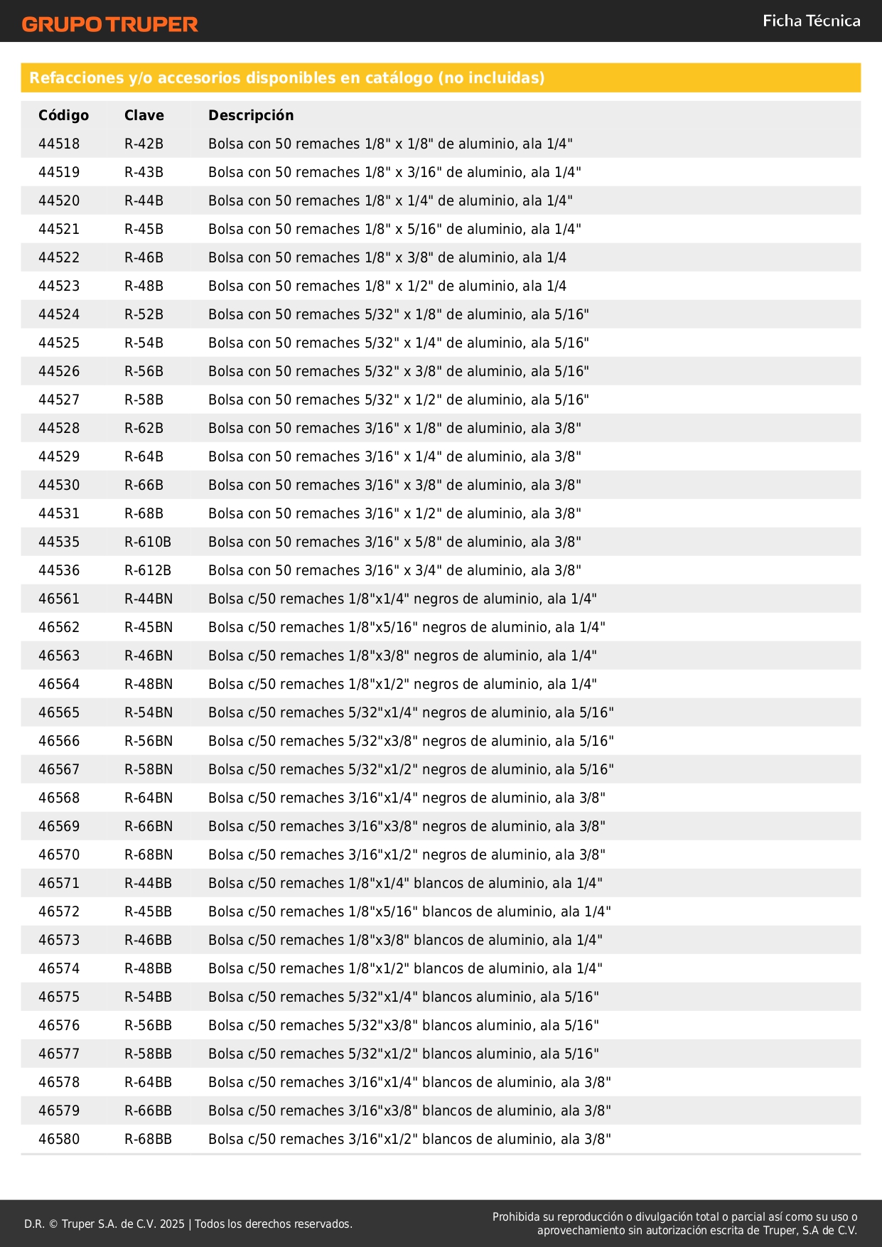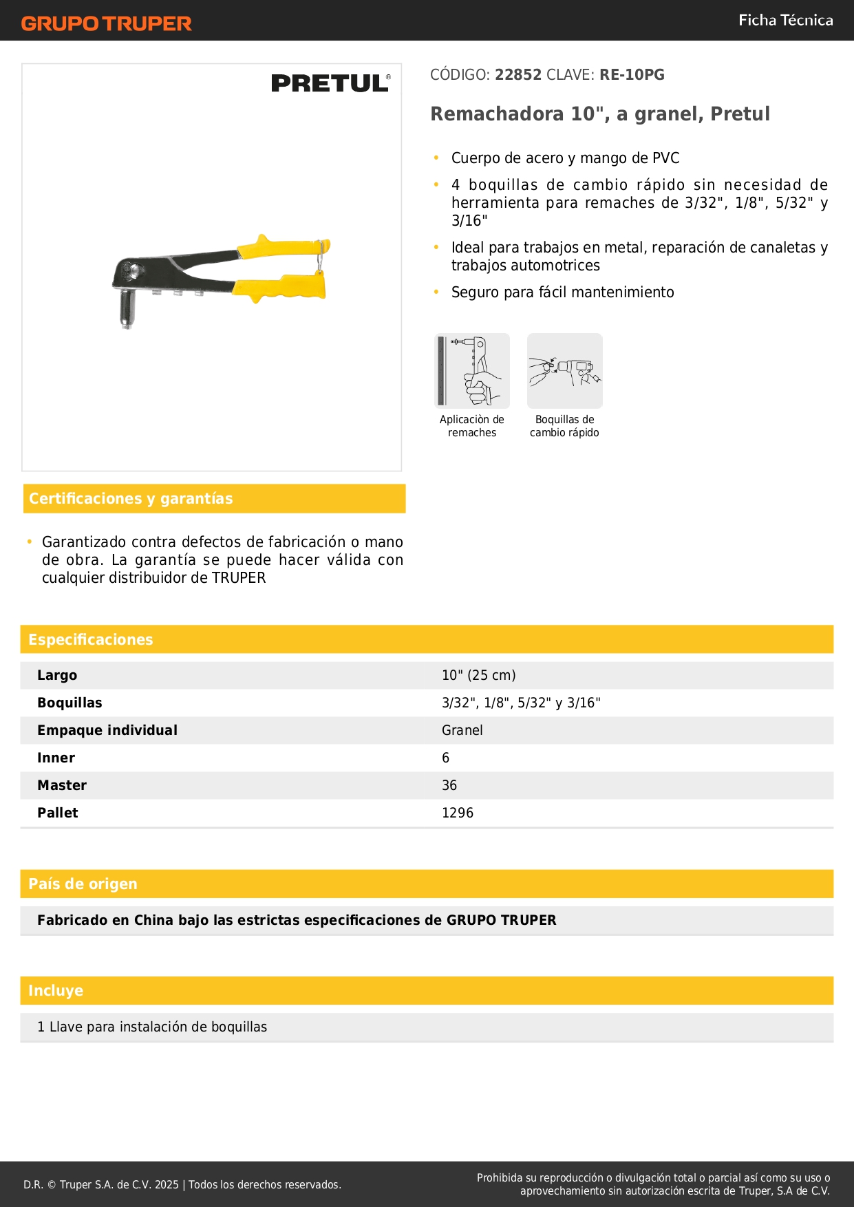 -4 boquillas de cambio rápido sin necesidad de herramienta para remaches de 3/32", 1/8", 5/32" y 3/16"