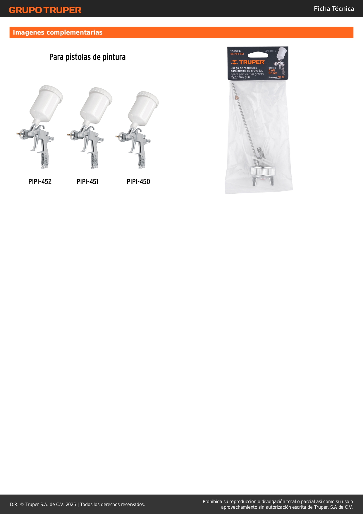 Repuestos para pistola para pintar PIPI-451, Truper Stock por sucursal Stock por sucursal S/ 40.70 cantidad Agregar al carro Avísame cuando llegue -Para pistola Serie 400, de gravedad modelo PIPI-451 marca Truper®