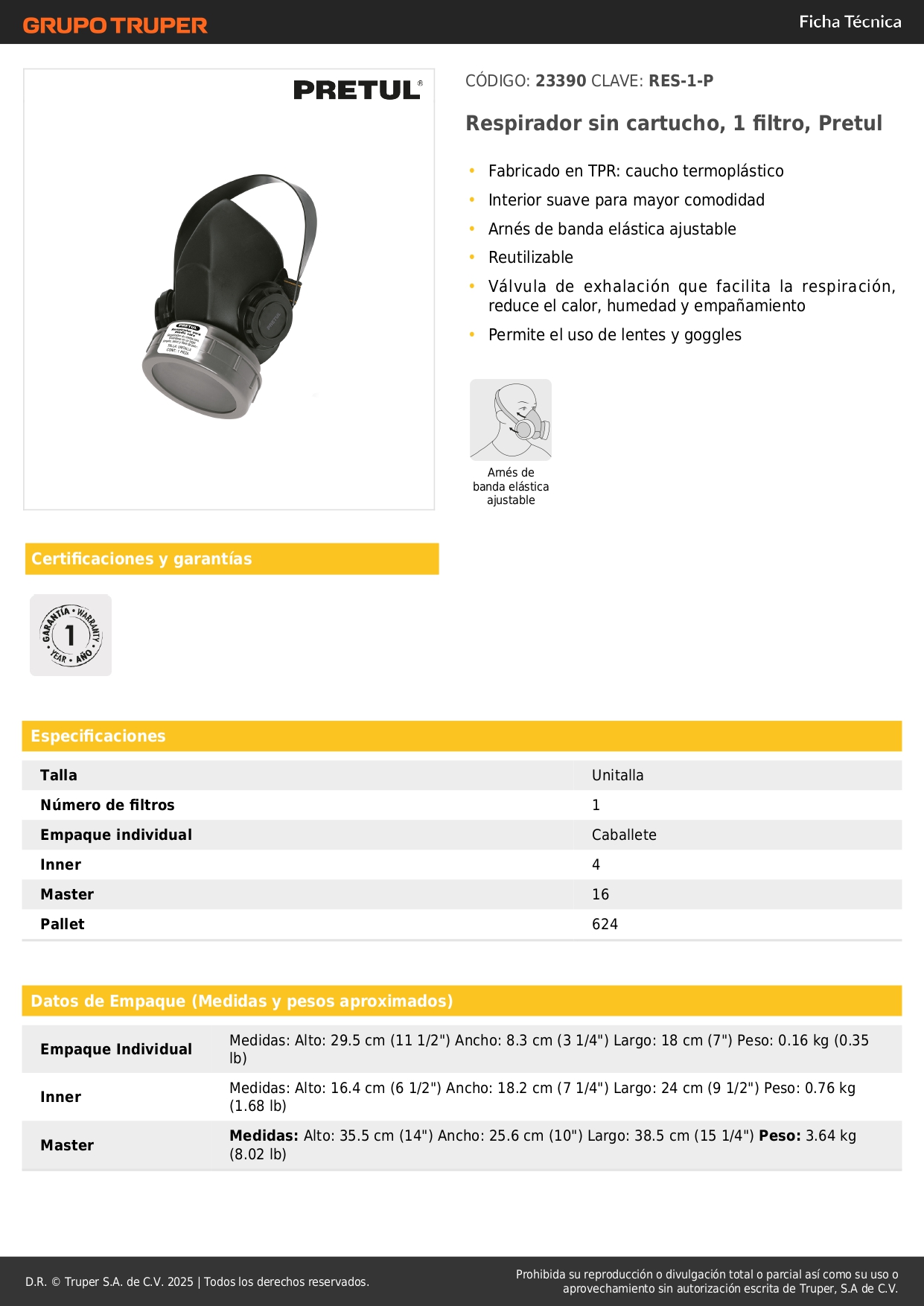 Respirador sin cartucho, 1 filtro, Pretul