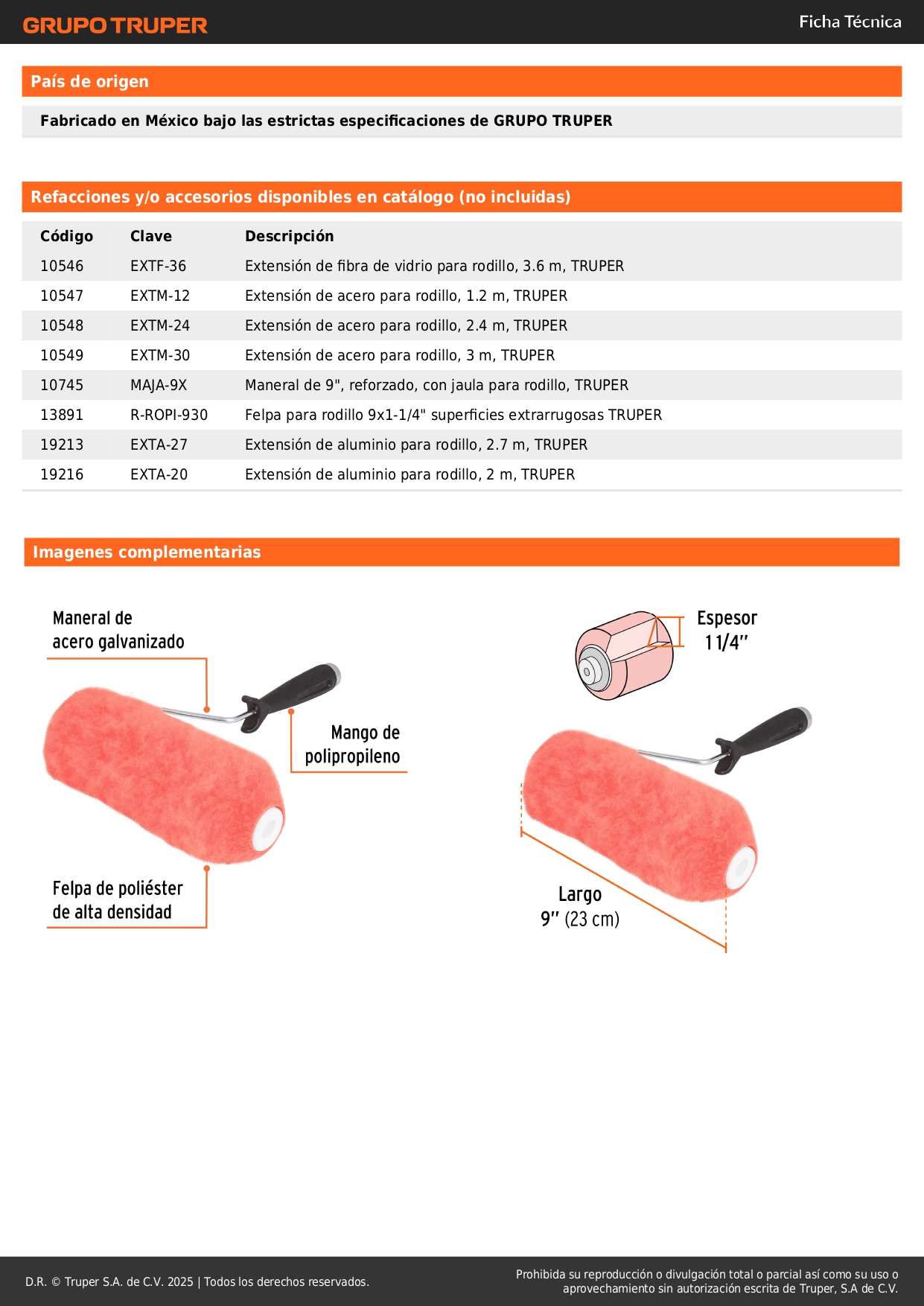 Rodillo para pintar 9´´ x 1-1/4´´ superficies extra rugosas Truper