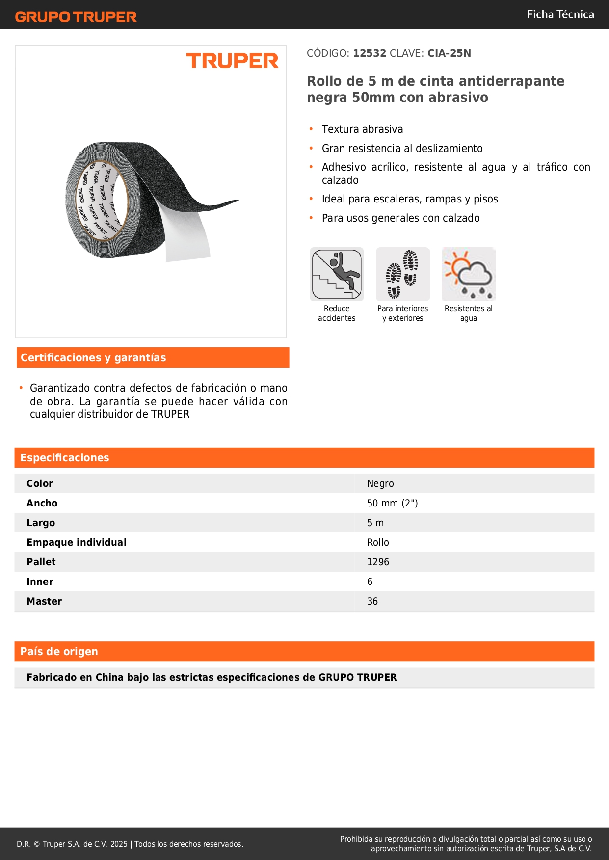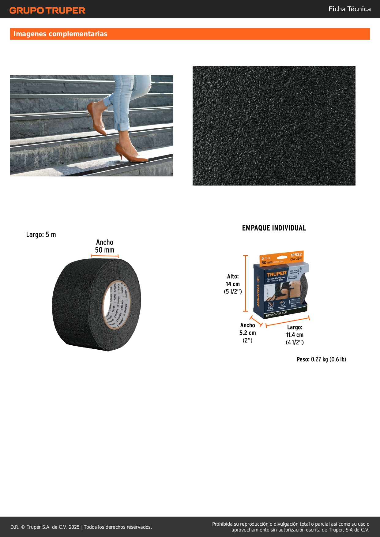 Rollo de 5 m de cinta antideslizante negra 50 mm Truper