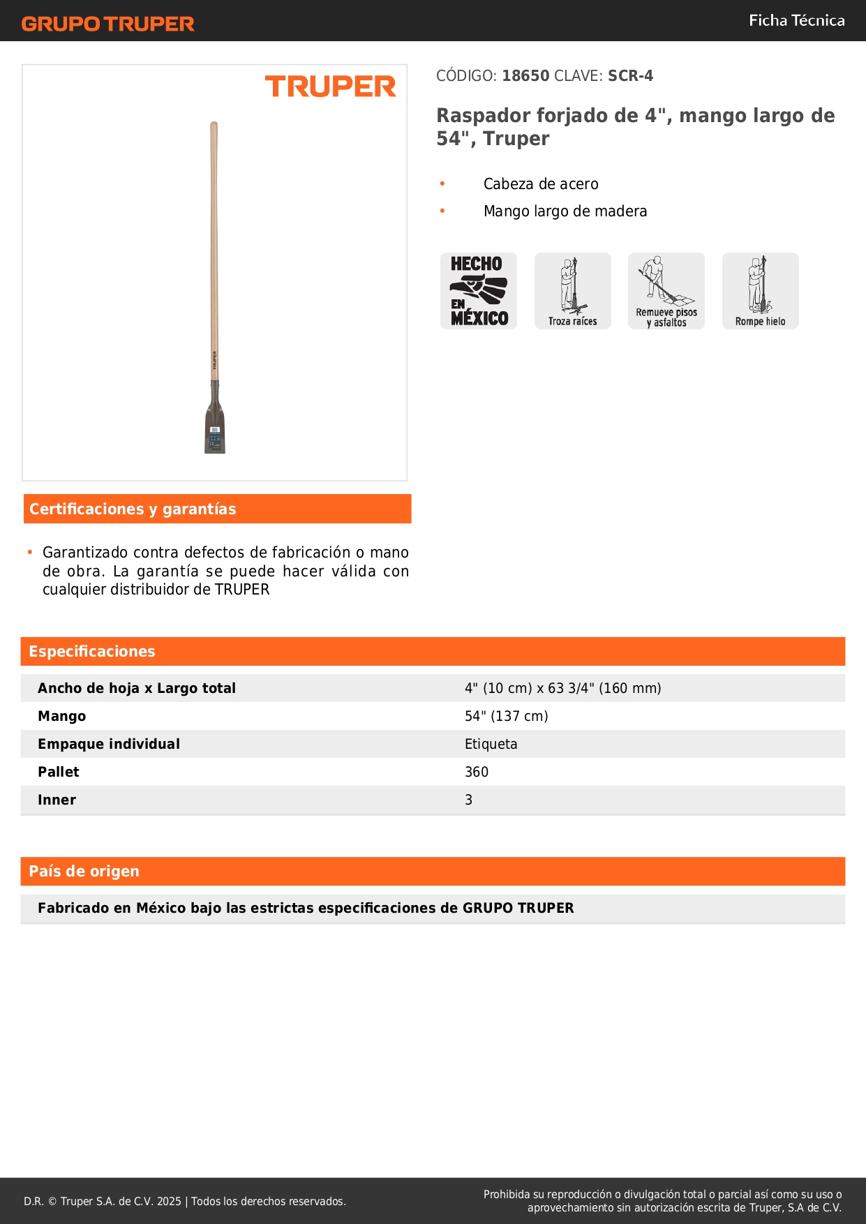 Rompedor de piso 4´´ con mango largo de 54´´, Truper Stock por sucursal Stock por sucursal S/ 43.00 cantidad Agregar al carro Avísame cuando llegue -Cabeza de acero-Mango largo de madera