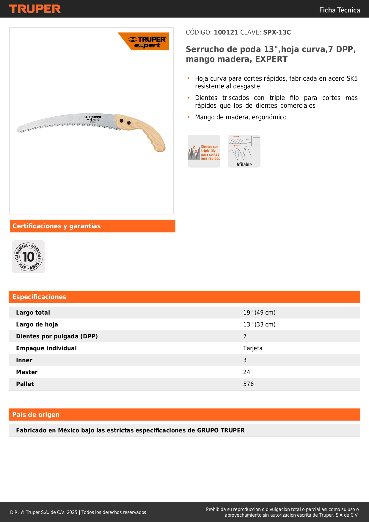 Serrucho de poda 13'' hoja curva 7 DPP Truper