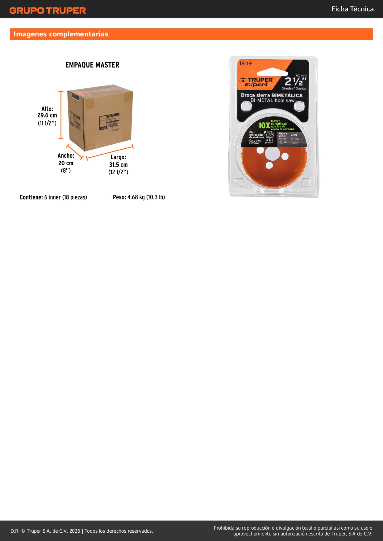 Sierra copa bimetálica 2-1/2´´, Truper Expert