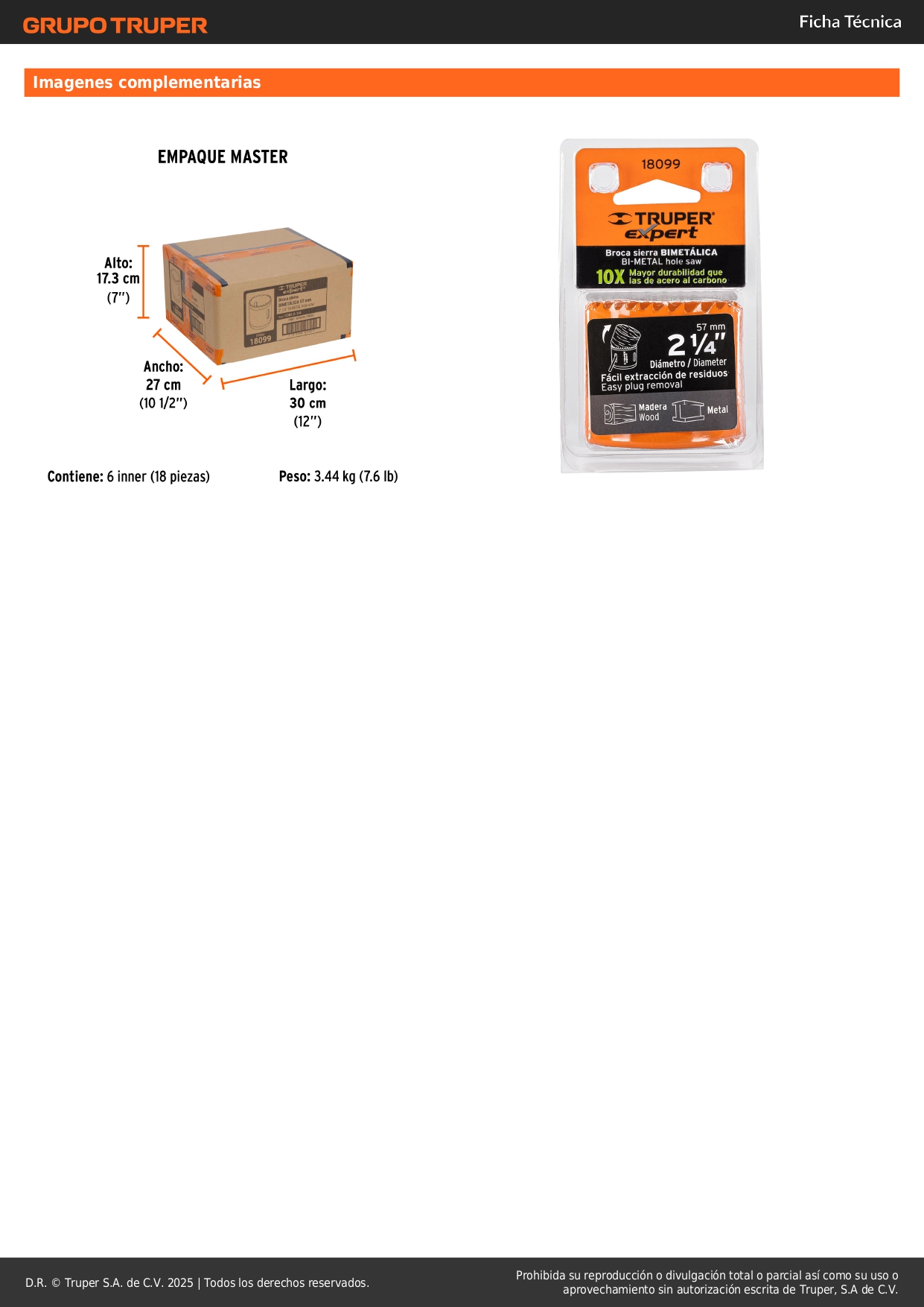 Sierra copa bimetálica 2-1/4'' Truper Expert
