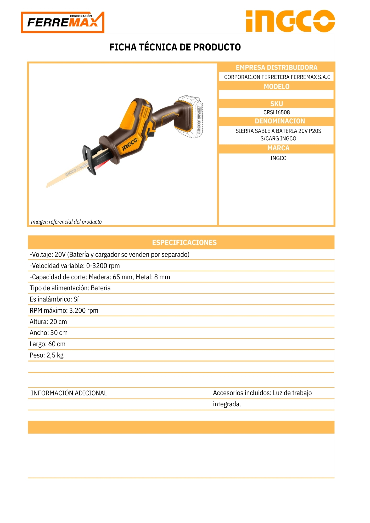 -Incluye: Luz de trabajo integrada