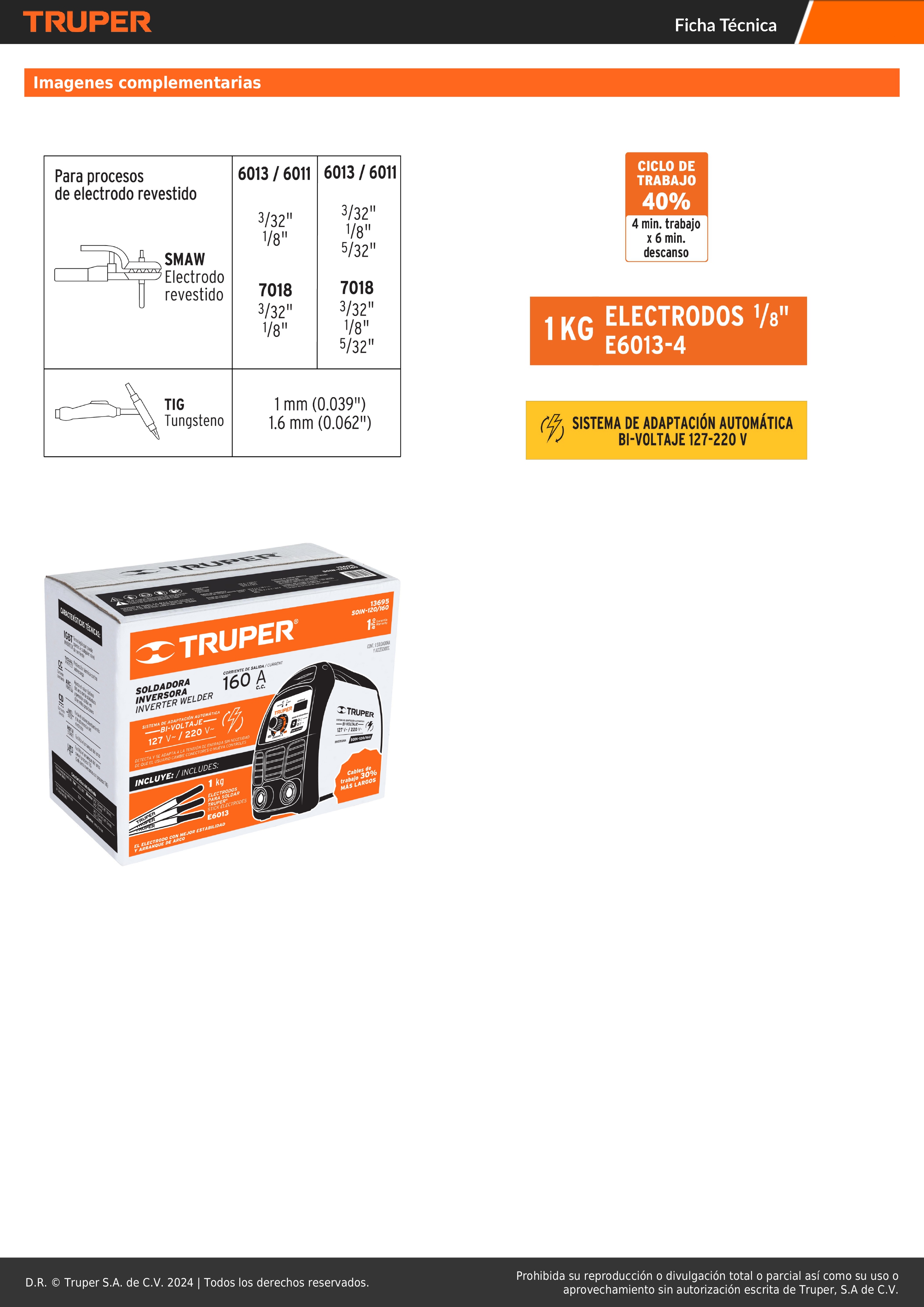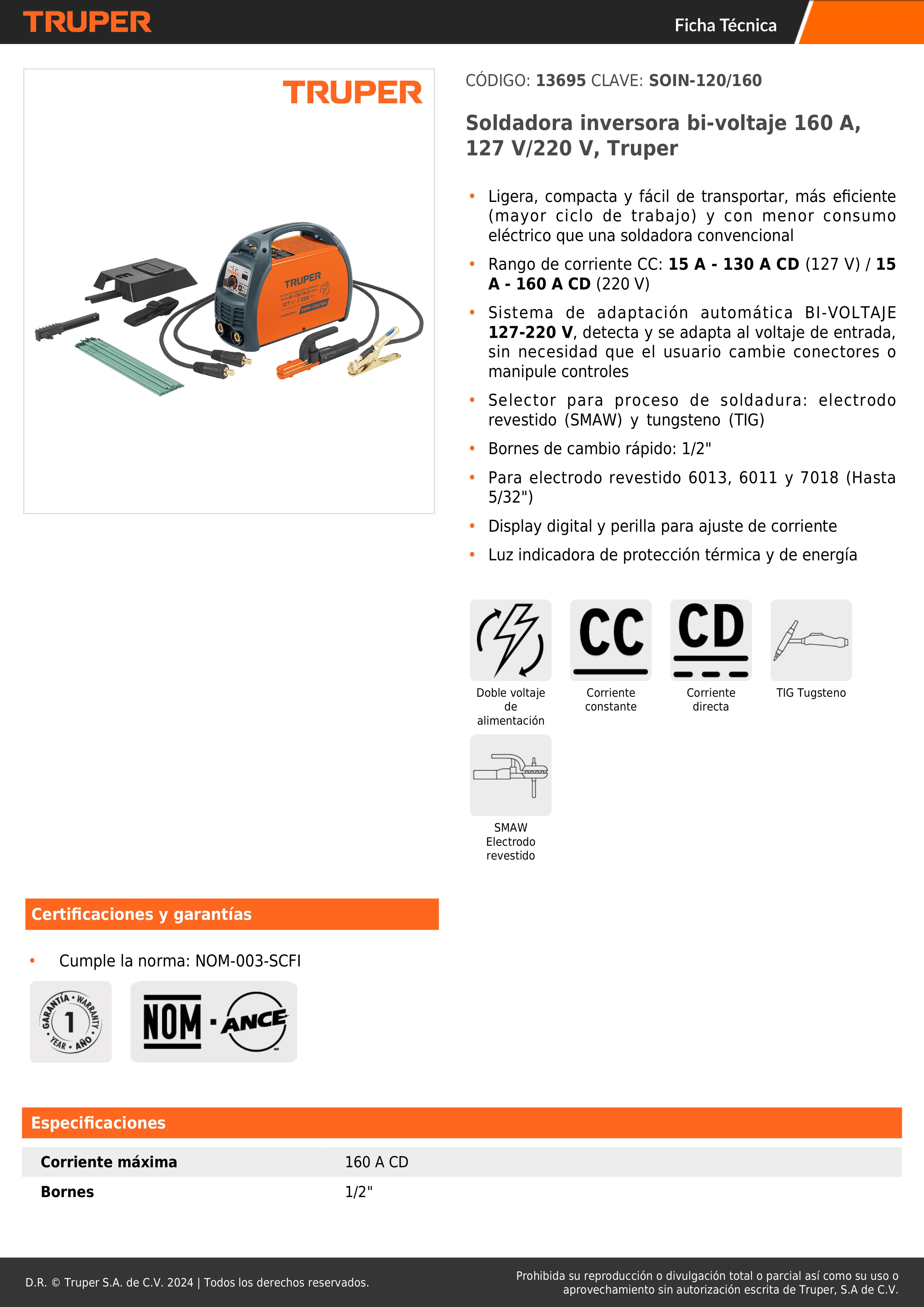 Soldadora inversora 160 A bi-voltaje Truper