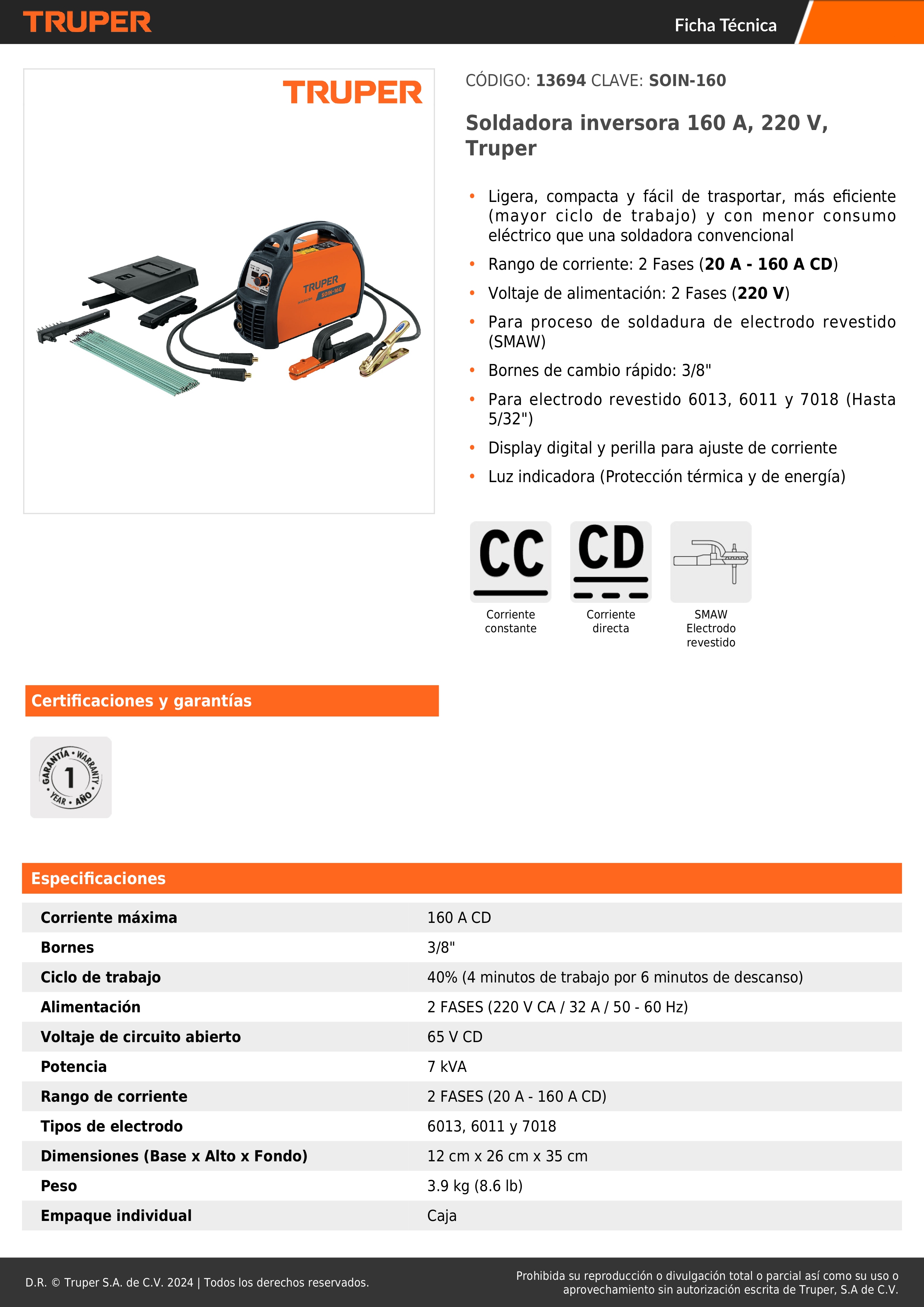 Soldadora inversora 160 A Truper