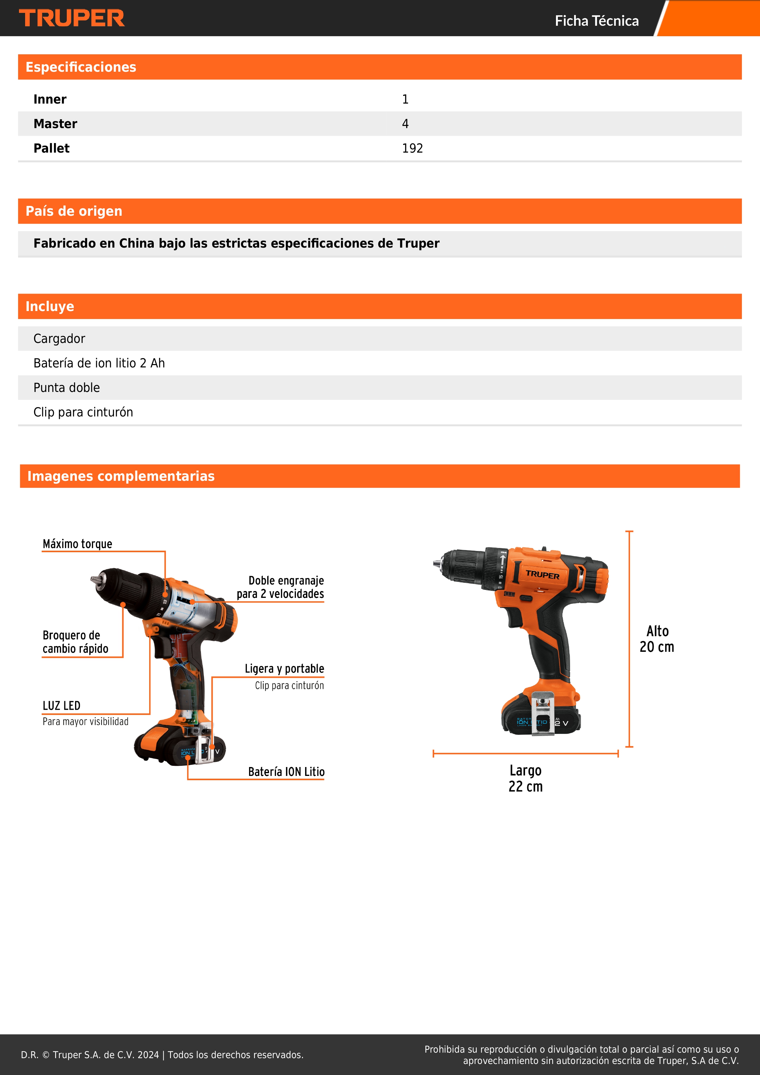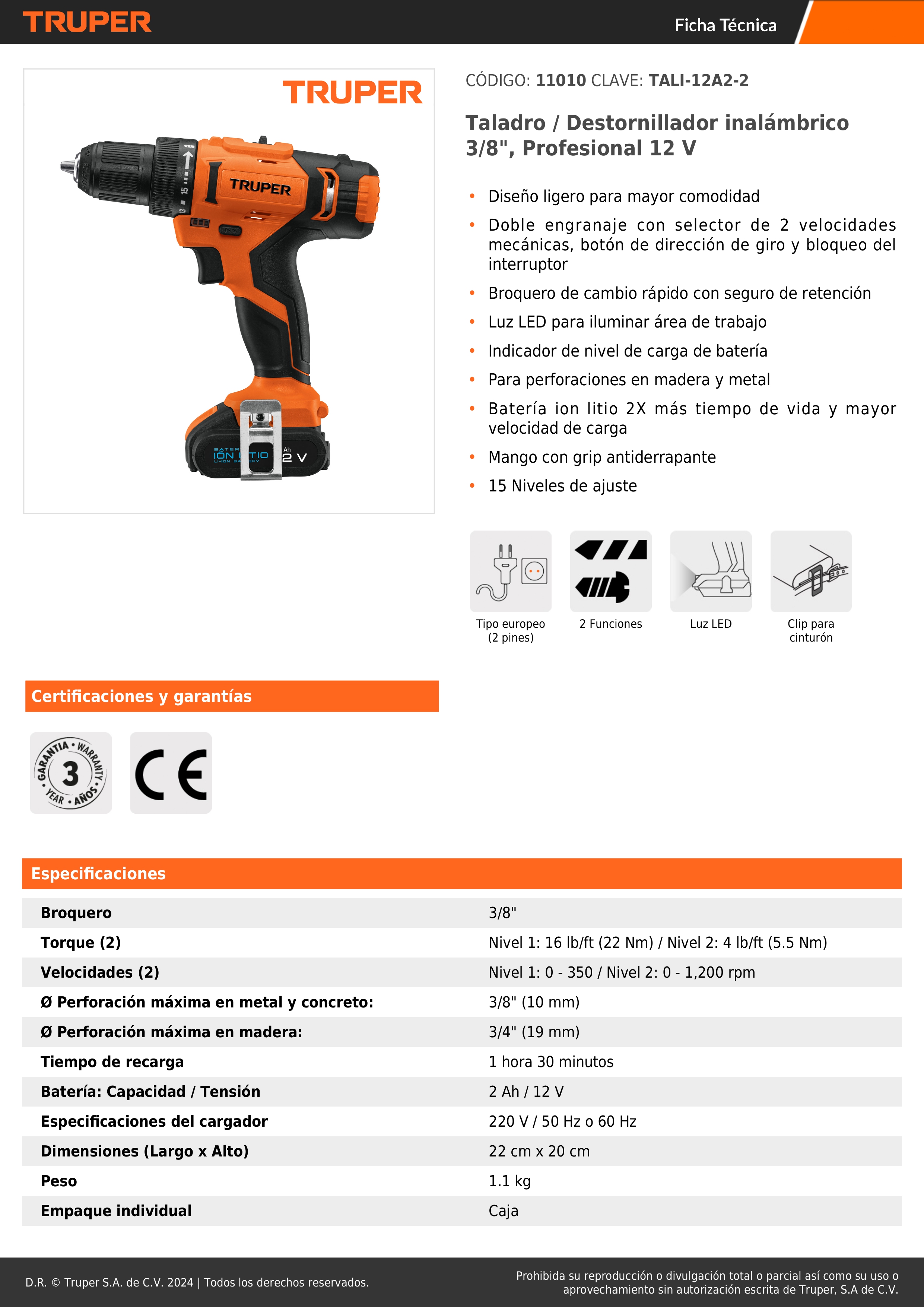 - Batería de Ion-Litio con 18 V de tensión que dura 2 veces más que las convencionales.