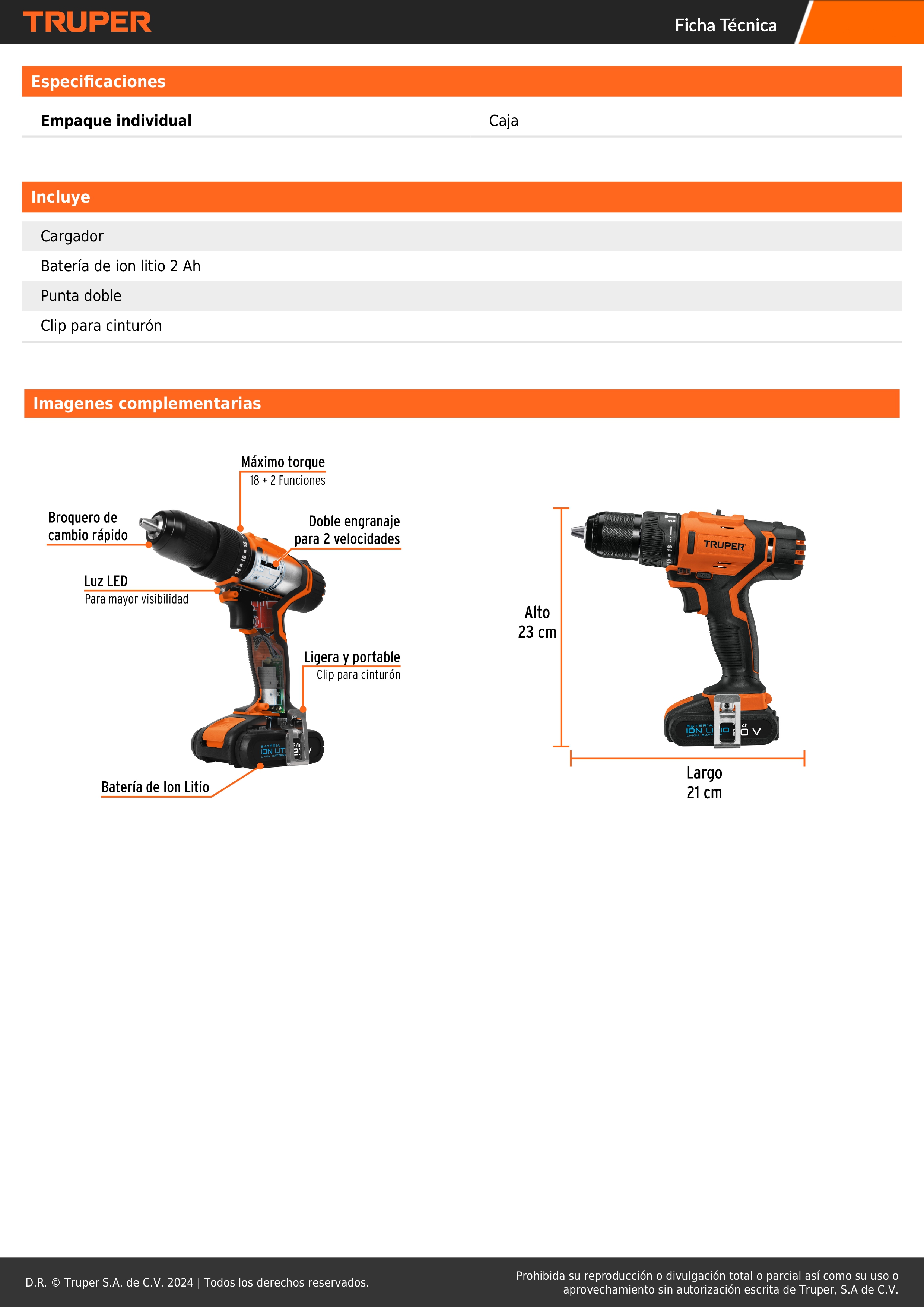 Ø Perforación máxima en concreto / metal: 1/2" (13 mm)