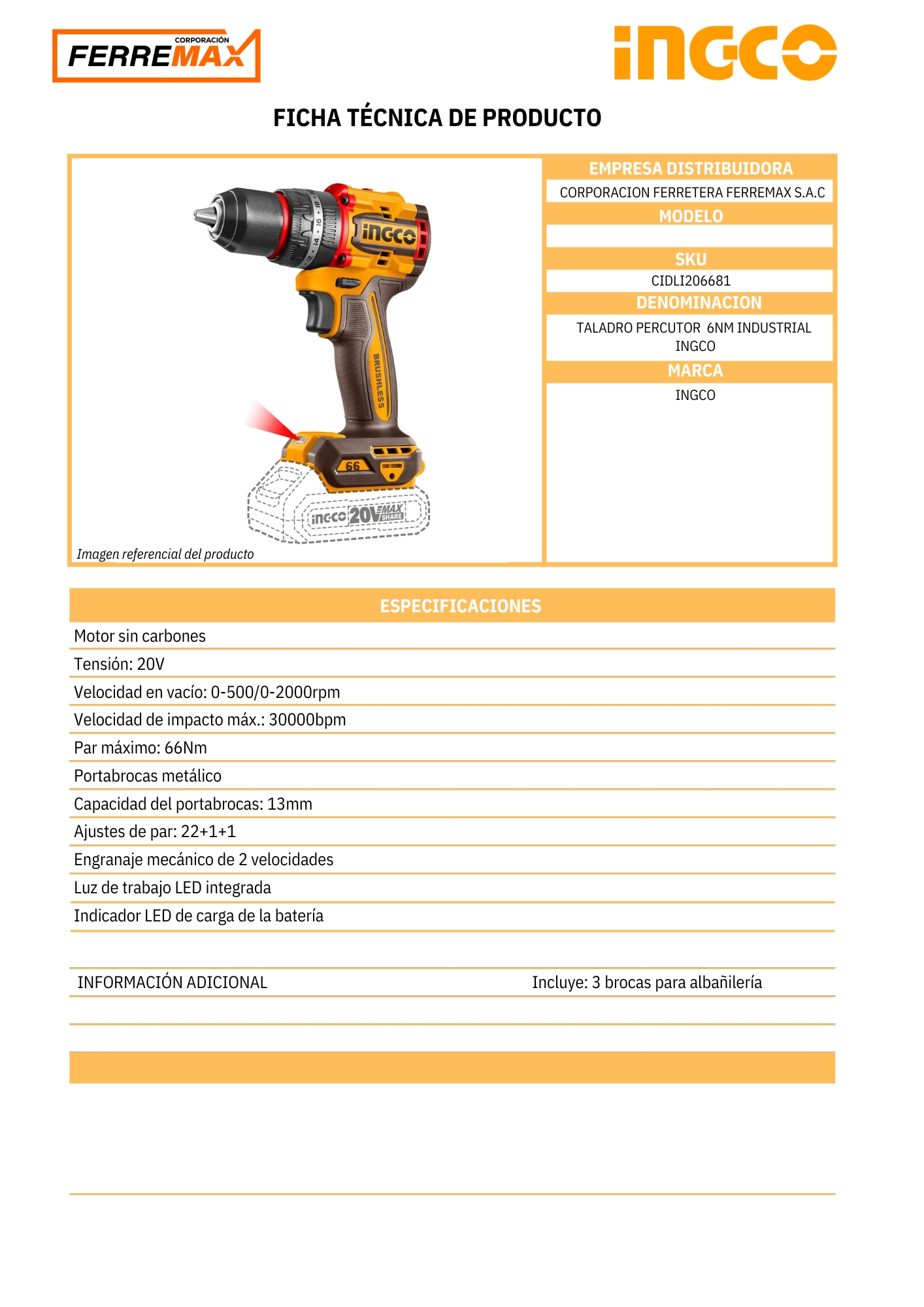 Taladro percutor 66nm industrial Ingco
