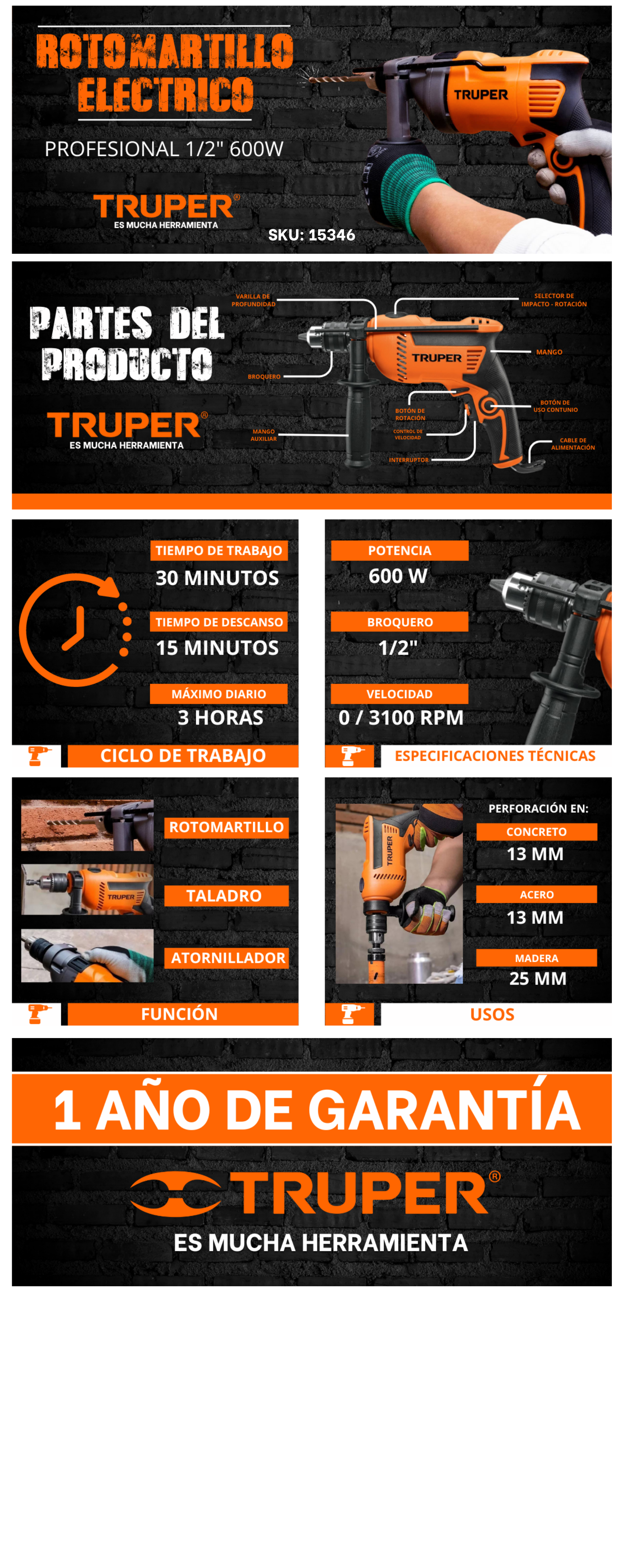 - Para perforaciones en concreto, madera y metal