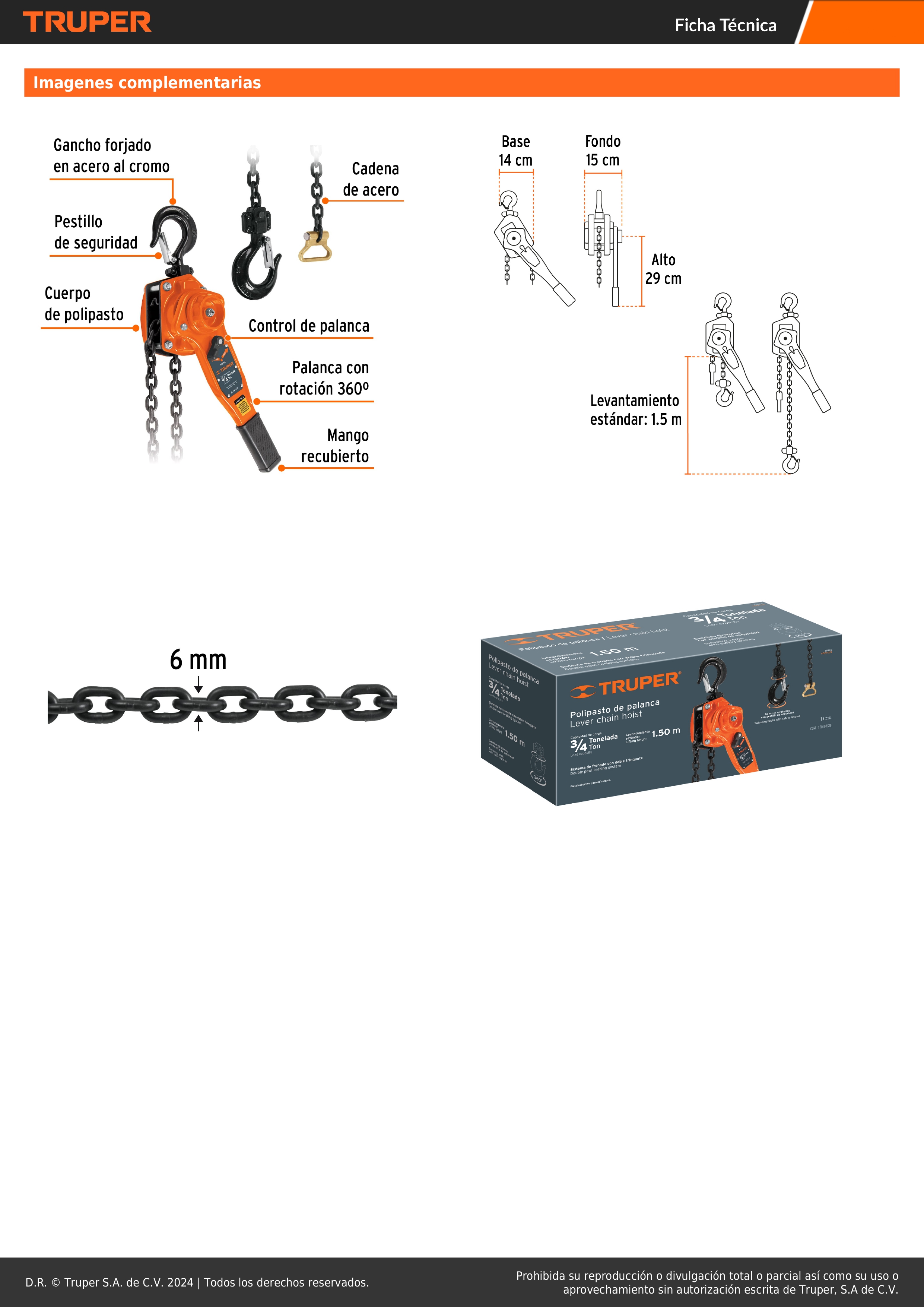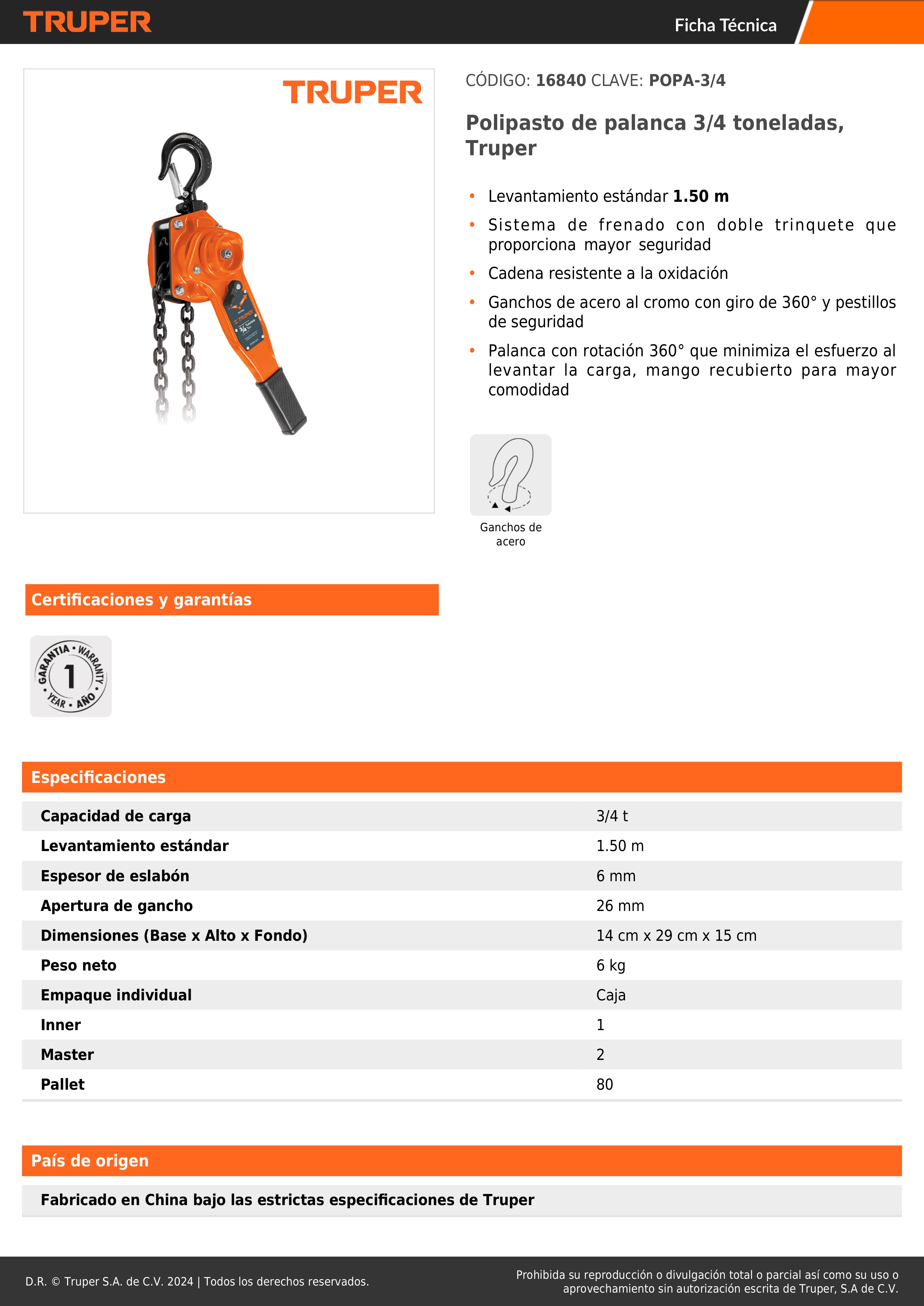 Tecle con ratchet de 3/4 ton Truper