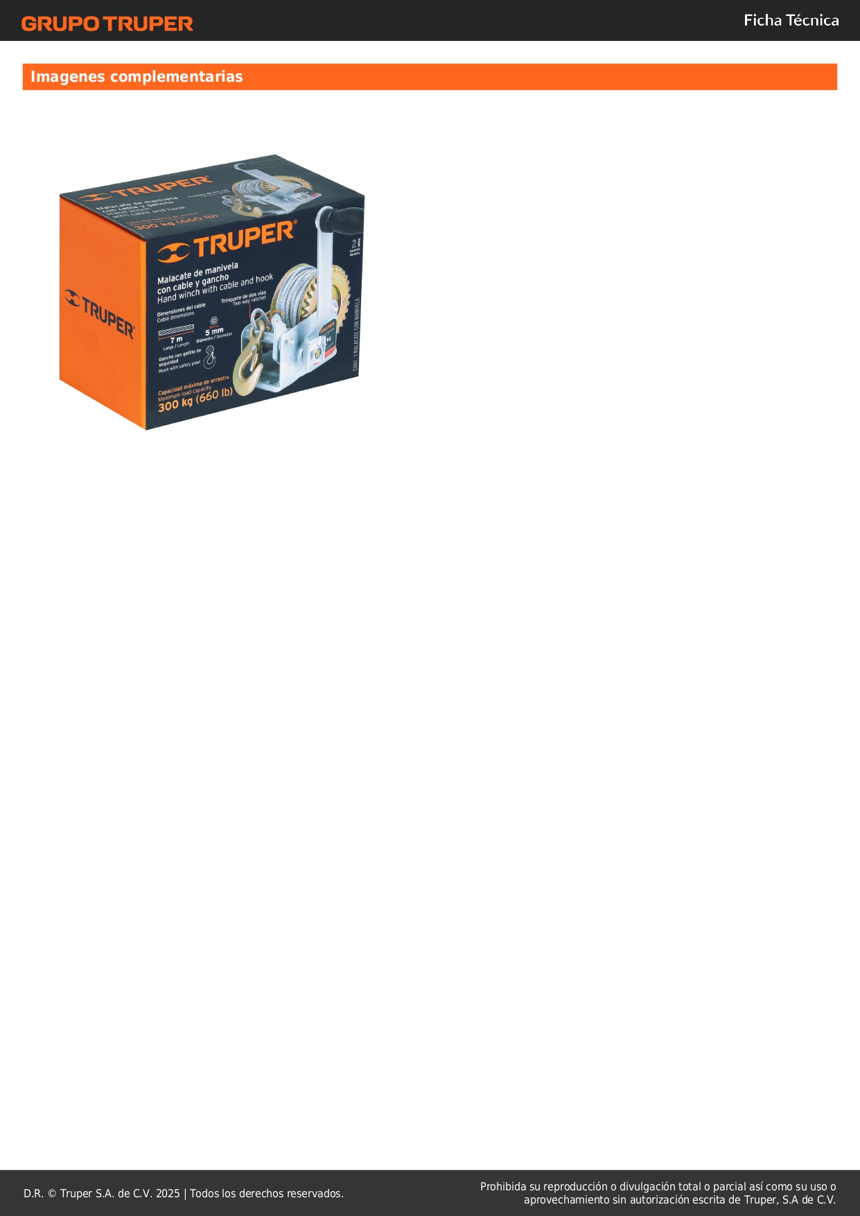 Malacate de manivela 300 kg con cable, Truper