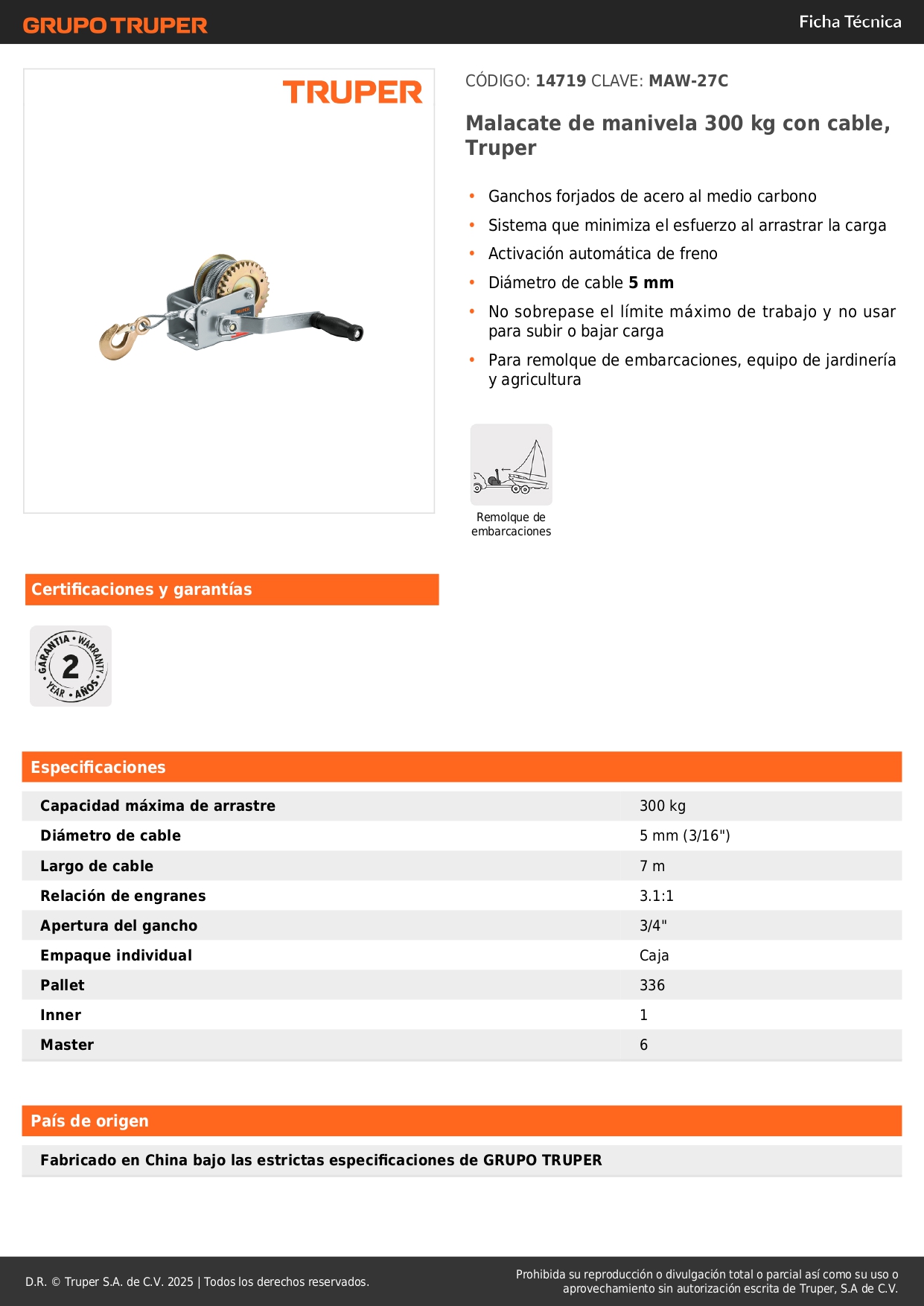 • Para remolque de embarcaciones, equipo de jardinería y agricultura