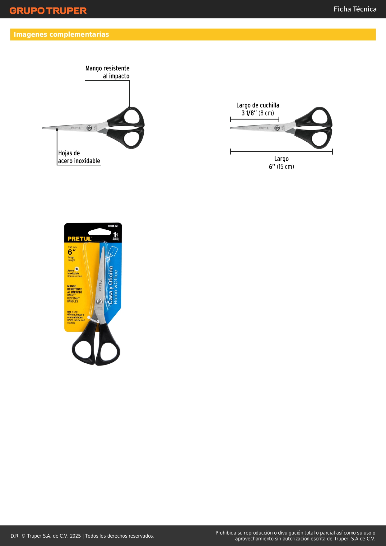 Tijera 6" de acero inoxidable para casa y oficina Pretul