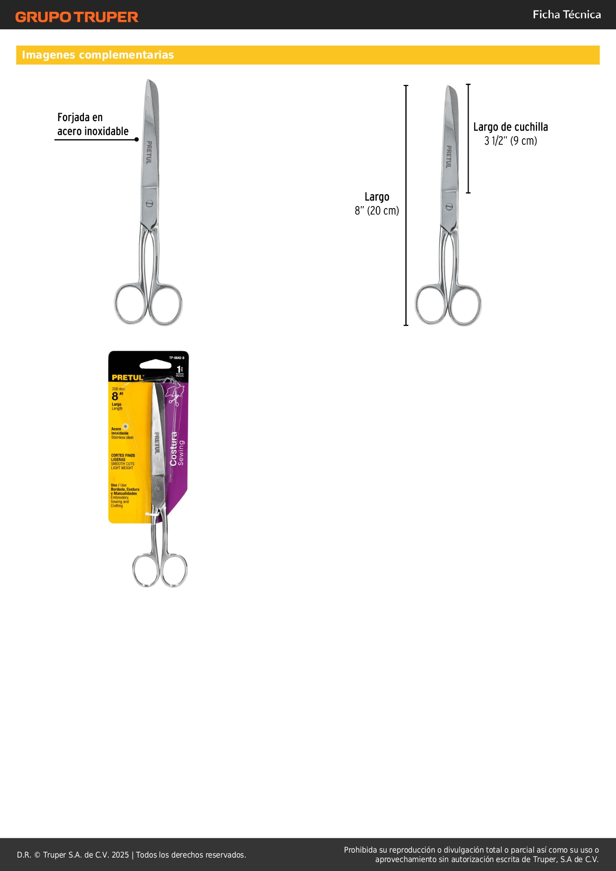 Tijera 8´´ de acero inoxidable para costura, Pretul Stock por sucursal Stock por sucursal S/ 17.70 cantidad Agregar al carro Avísame cuando llegue -Forjada en acero inoxidable-Ligera-Cortes finos-Para bordado, costura y manualidades