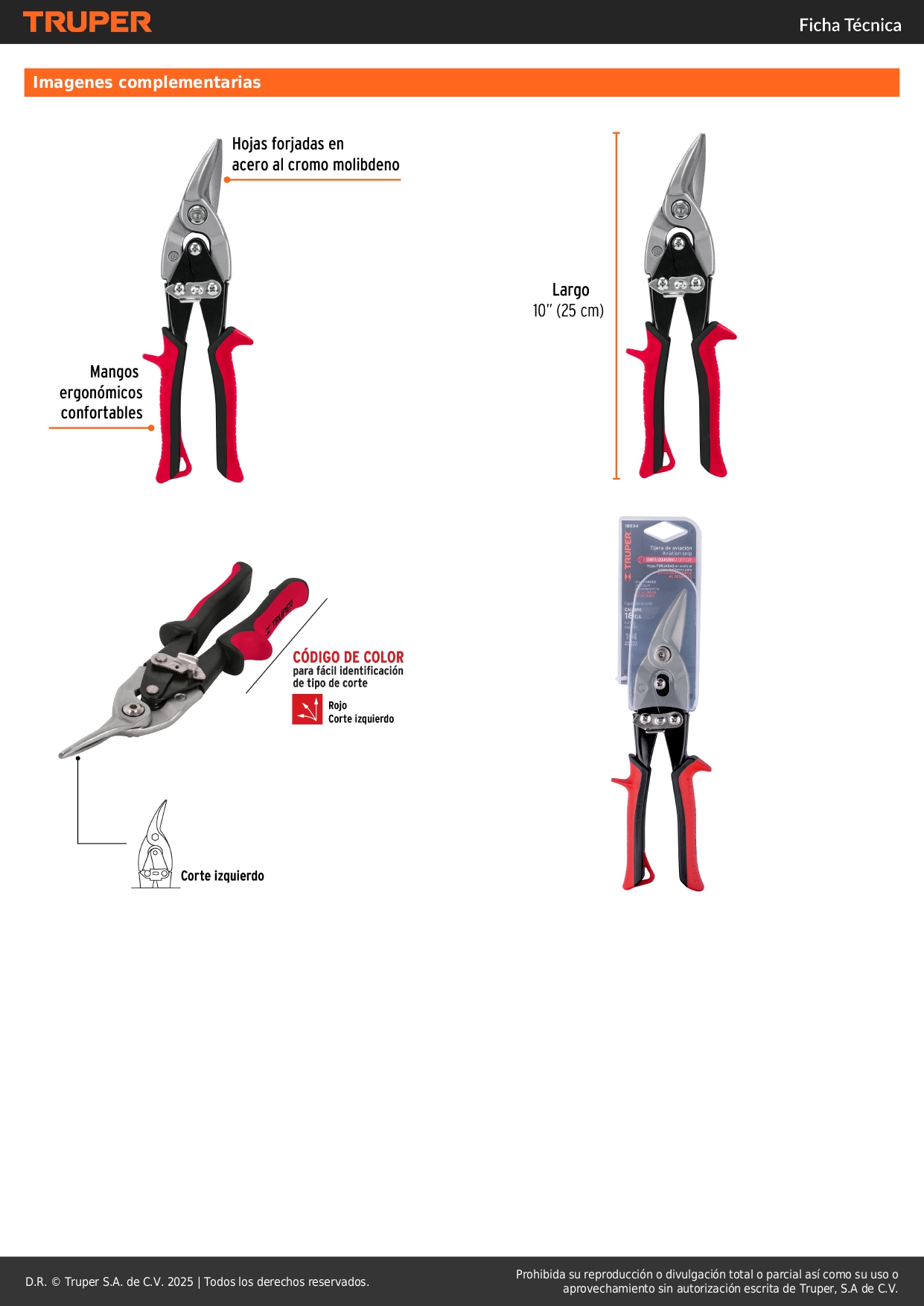 Tijera de aviación 9 1/2´´ corte izquierdo, Truper