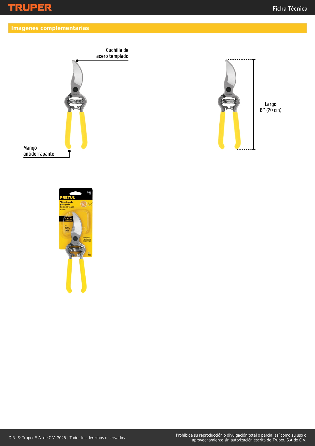 Tijera para poda 8'' forjada cuchilla de paso Pretul