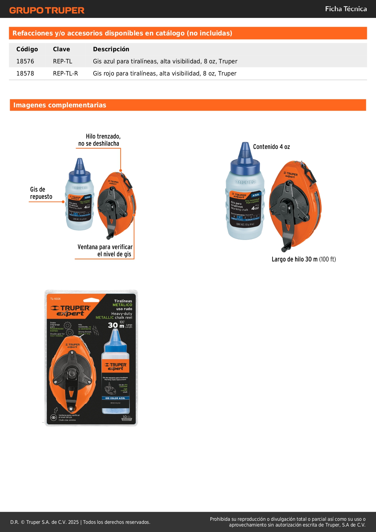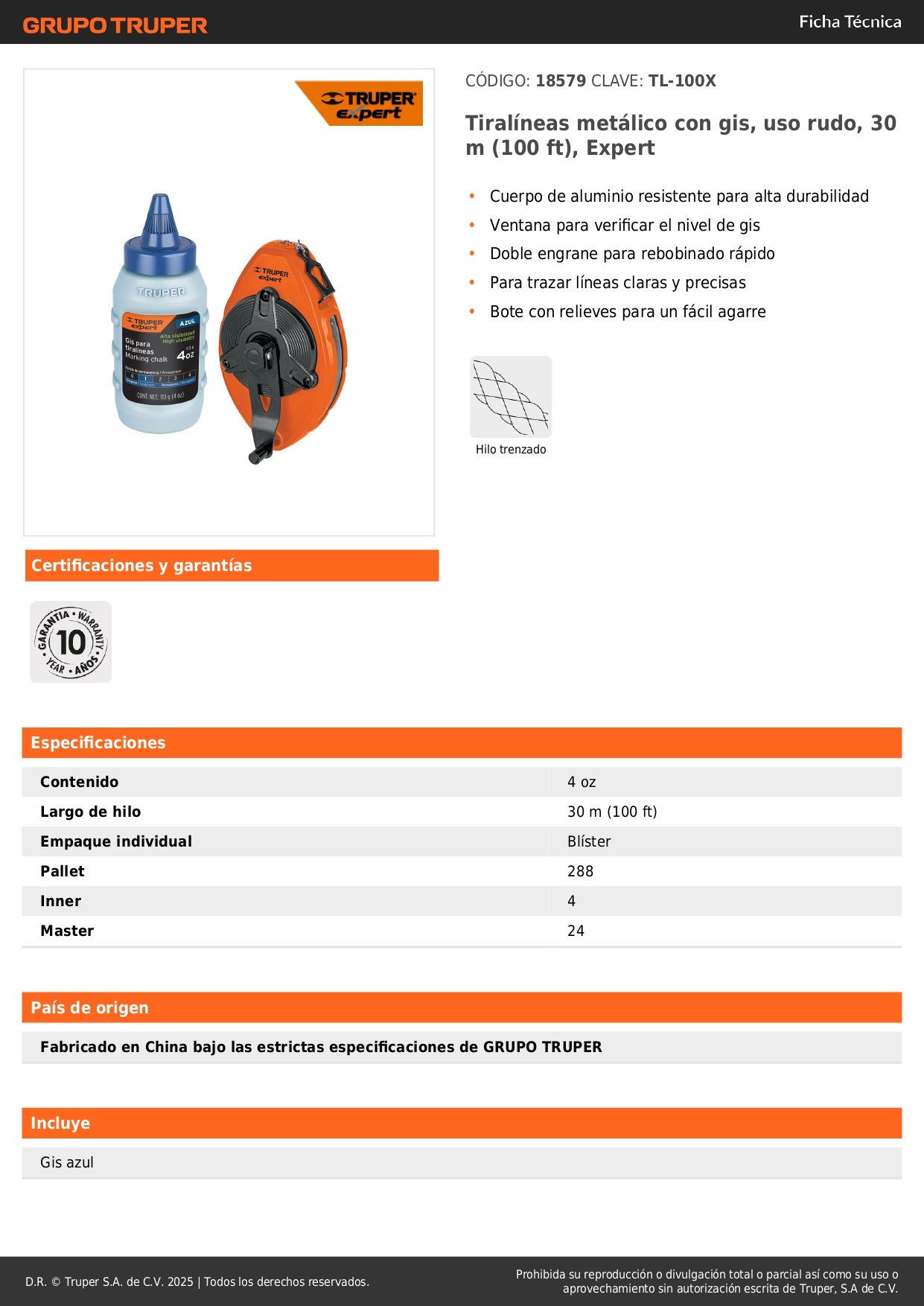 Tiralíneas 30 m (100 ft) metálico uso rudo Truper expert