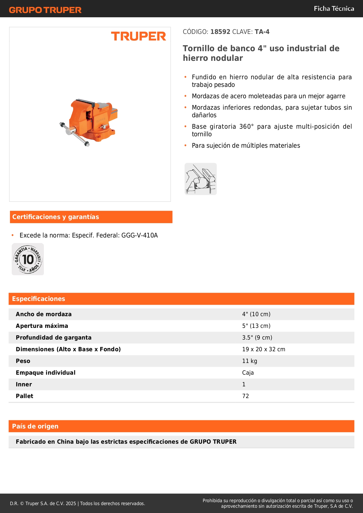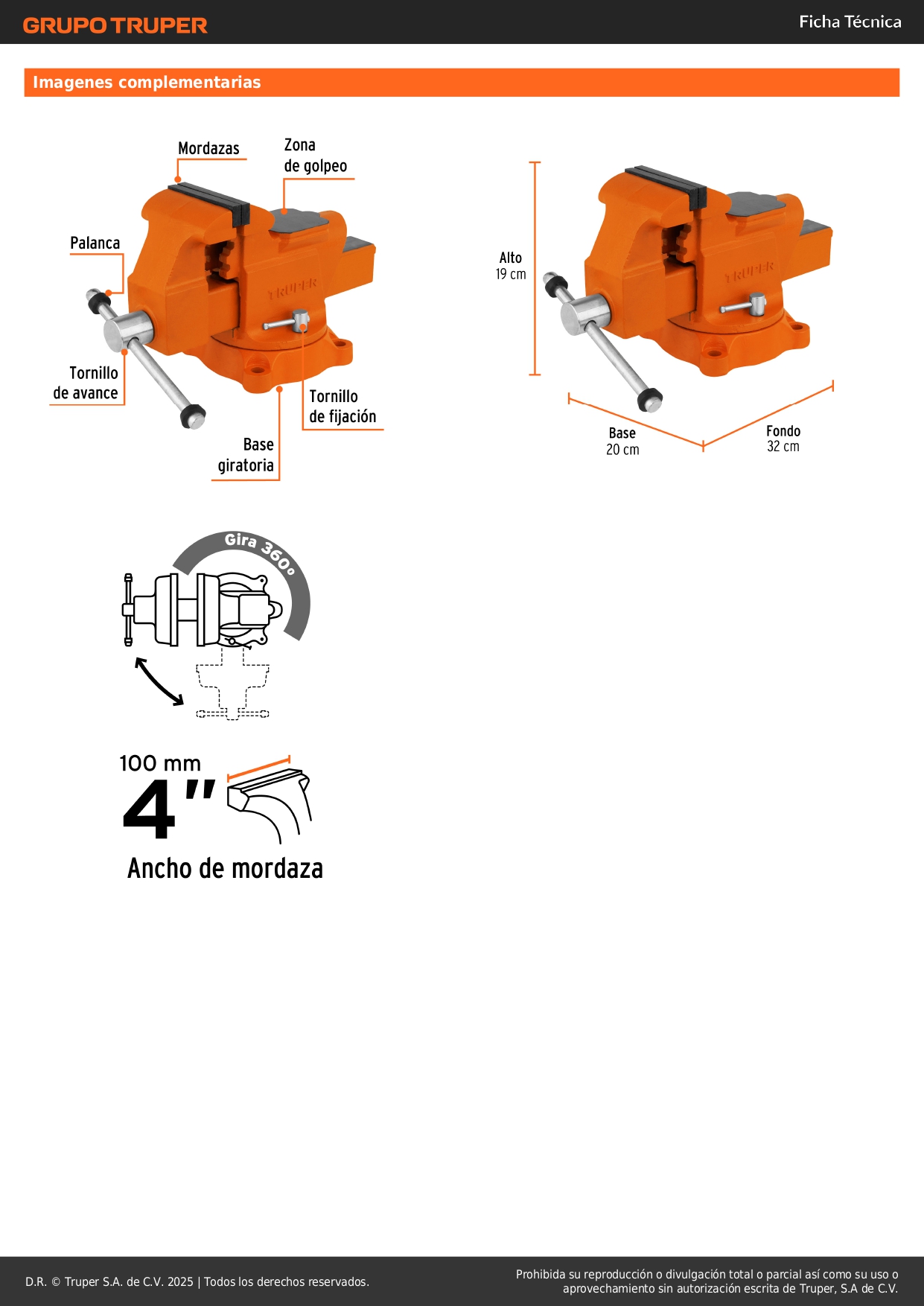 Ancho de mordaza 4" (10 cm)