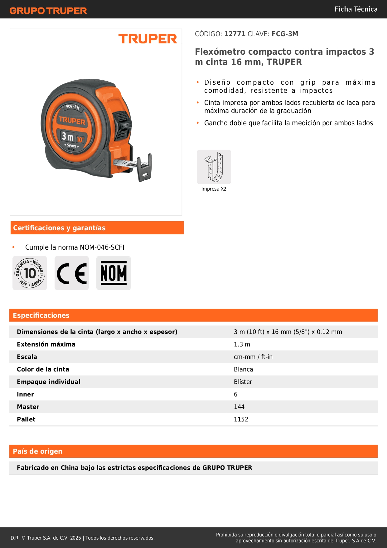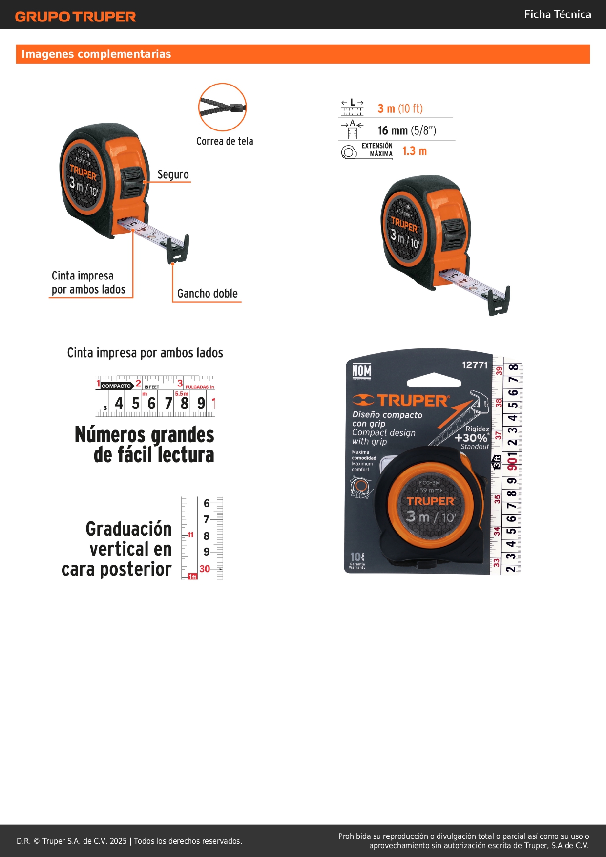 Wincha compacta contra impactos 3 m cinta 16 mm Truper